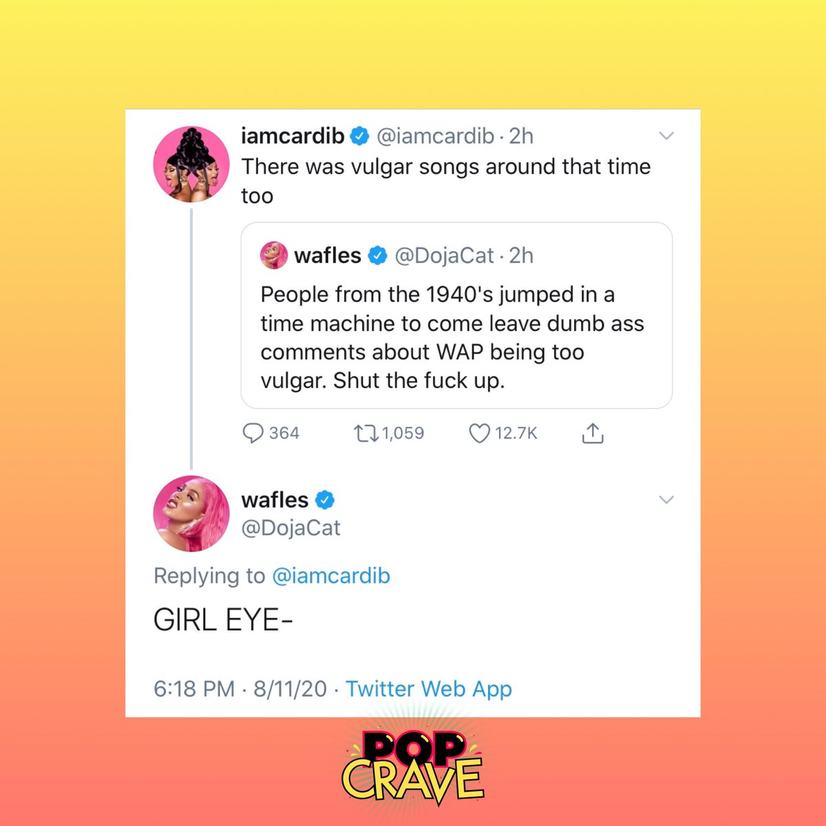 Pop Crave On Twitter Doja Cat Defends Cardi B Megan Thee Stallion S Wap Music Video Amid Criticism Of Its Raunchy Lyrics