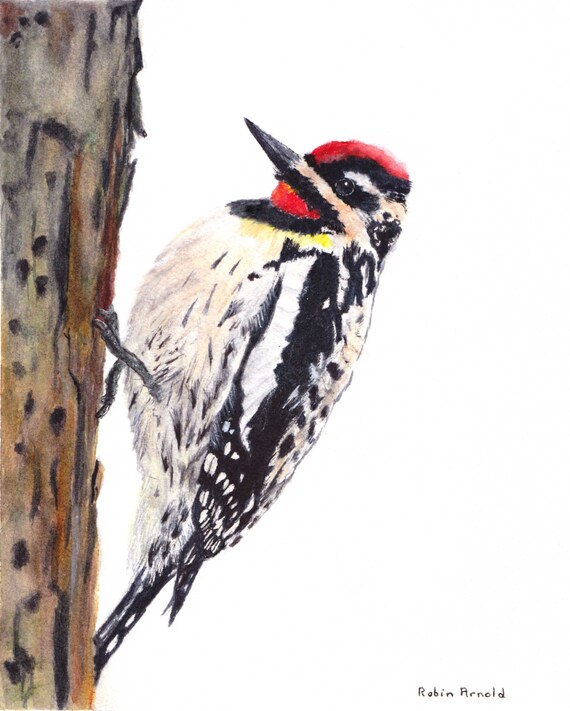 Yellow Bellied Sapsucker Print Of Watercolor Painting Etsy